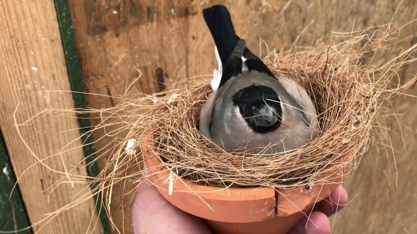 Призывом к гнездованию птиц является увеличение светового дня весной, поэтому нельзя нарушать в домашних условиях естественную продолжительность дня. Примерно в конце марта — апреле в клетку следует поместить небольшое гнездо, желательно, сделанное из натуральных материалов (веток, сухой травы). Также лучше на полу клетки оставить несколько веточек, мох, сено, кокосовые волокна, чтобы птицы могли сами окончательно обустроить гнездо. Для стимулирования снегирей к размножению гнездо надо «замаскировать» — с одной стороны укрыть еловой веткой.