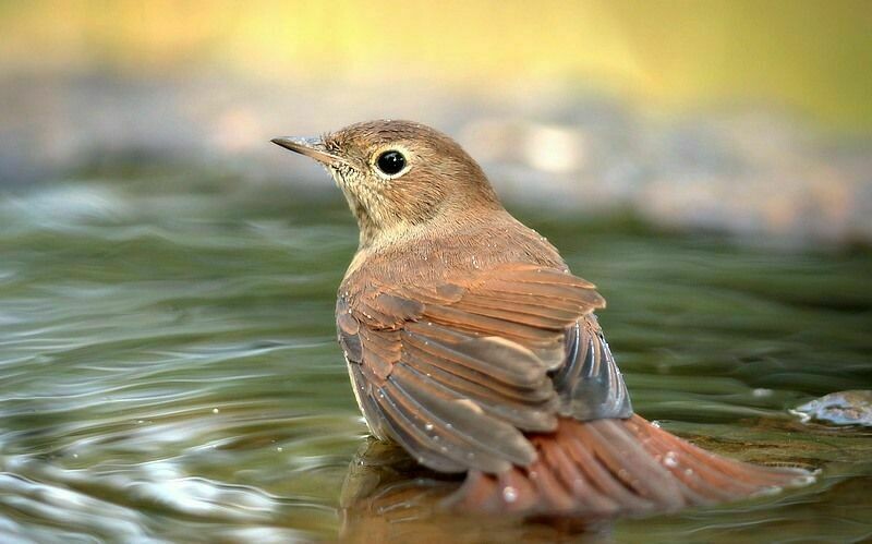 С разумной осторожностью и учетом климата можно поставить соловьям небольшую купальню, они любят водные процедуры.