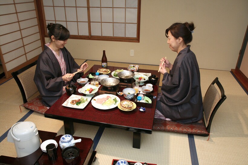 Столы в Японии очень низкие. Участники обеда сидят за ними на татами, в позе сэйдза — на пятках с прямой спиной. На официальных торжествах эта поза считается обязательный, а дома можно сесть за стол по-турецки.