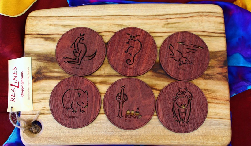 - Деревянные костеры (подставки для стаканов) – один из самых любимых мной сувениров из Австралии. Оригинально, красиво и, главное, очень по-австралийски.