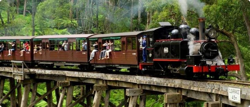 Пафинг Билли – это захватывающее путешествие на паровозе по оригинальному 25-километровому горному маршруту сквозь леса и равнины от Белгрэйв до Джембрук. Добраться до станции Belgrave можно на метро по одноименной линии (Belgrave Line), после чего следовать указателям на "Puffing Billy". Стоимость билета туда-обратно на взрослого $51,50.