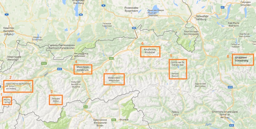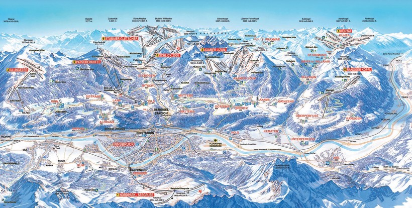 Инсбрук - административный центр и крупнейший город Тироля, по совместительству двукратная столица зимних Олимпийских игр. Рядом с городом находятся шесть регионов катания — Seegrube-Nordkette, Patscherkofel, Axamer Lizum, Glungezer, Schlick 2000, Stubaier Gletscher. Первый – самый «черный», самый опасный, последний – самый мягкий и спокойный. В основном опытные горнолыжники приобретают Olympiaworld Skipass, который дает возможность кататься на каждом из выше перечисленных курортов, и за шесть дней с вас попросят 222 EUR. Есть и другие, более дешевые тарифы, о которых вы можете прочитать на этом сайте, однако, на мой взгляд, этот самый выгодный. Новички, как правило, учатся на одном и том же склоне – для этого как раз и подойдет Штубайский ледник. Еще стоит отметить Акзамер Лицум – главный курорт Олимпийских игр 1964 и 1976 годов.