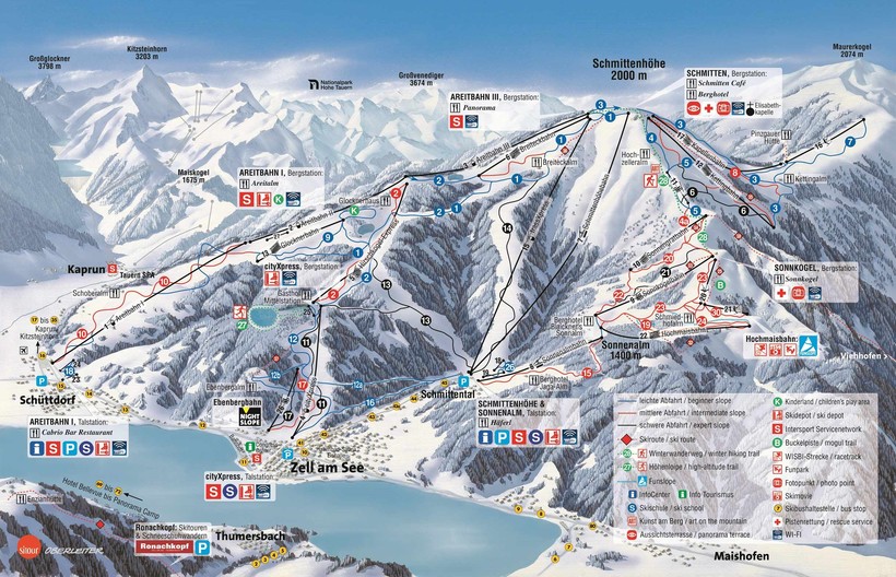 Цель-ам-Зее, пожалуй, самый прекрасный вариант для тех, кто только учится кататься. Несложные трассы понравятся новичкам, которые еще не очень уверенно чувствуют себя на склоне, и оставят у них самые прекрасные впечатления. Любители острых ощущений и крутых спусков здесь тоже могут найти трассы по своему вкусу, однако в гораздо меньших количествах, чем на некоторых других курортах. Мне кажется, это логично – в таком прекрасном месте хочется неспешно ехать и любоваться прекрасным пейзажем гор и озера, а не проноситься с сумасшедшей скоростью, ничего не замечая на своем пути.