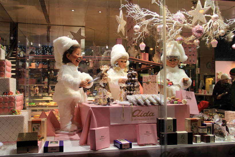 Обратите внимание на небольшие таблички, они говорят о том, что в прошлом эти заведения были поставщиками императорского двора. Кстати, разглядывать витрины – удовольствие само по себе, с такою любовью они оформлены!