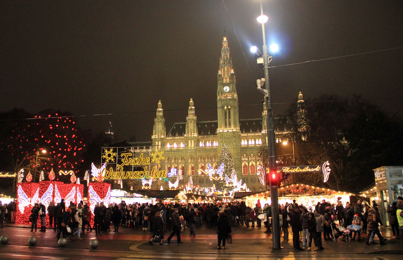 В предрождественский период Вена воистину прекрасна. Веселые рождественские рынки начинают принимать посетителей уже в конце ноября и открыты до Рождества. Но в сам праздник город довольно тихий, и многие заведения закрыты. А на следующий день рождественские украшения уже начинают убирать.