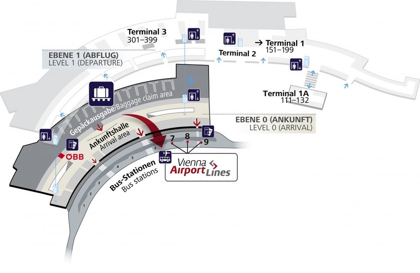 Vienna Airport Lines – 3 автобусных маршрута, объединяющие аэропорт с центром города и всеми ветками Венского метрополитена. Дорога займет 20 минут. Цена 8 EUR (13 EUR туда-обратно), дети с 6 до 14 лет – 4 EUR. Автобусы на линии Wien Morzinplatz/Schwedenplatz ходят круглосуточно.