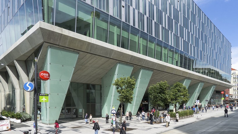Центральный железнодорожный вокзал Wien Hauptbahnhof, где останавливается большинство поездов дальнего следования.