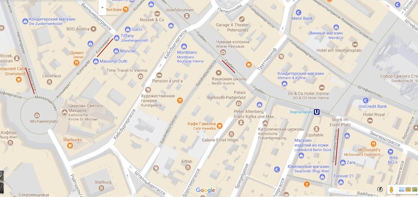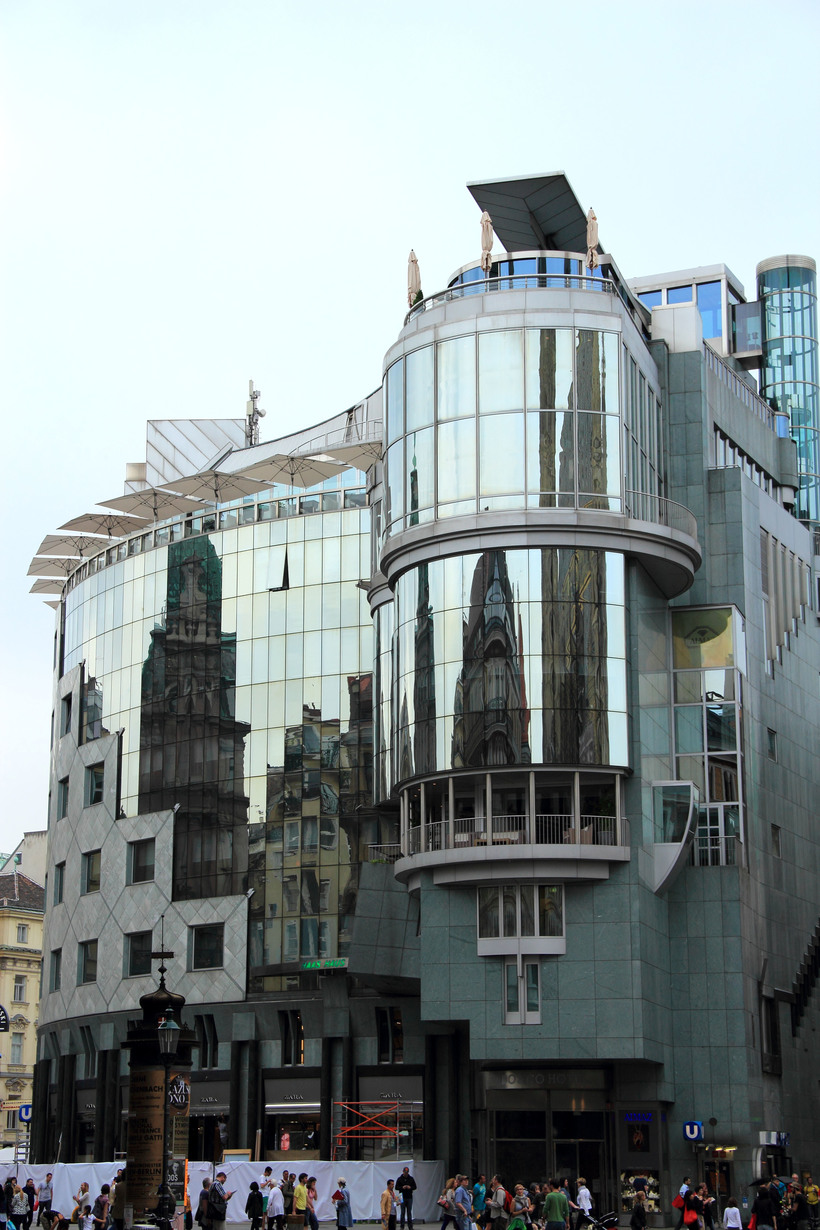 Оценить архитектурные эксперименты. Например, геометричный Looshaus, вызвавший негодование императора Франца Иосифа или дом Хааса Haas haus, в котором так красиво отражается Собор Святого Стефана.