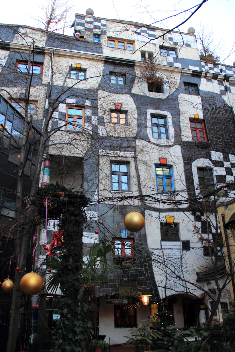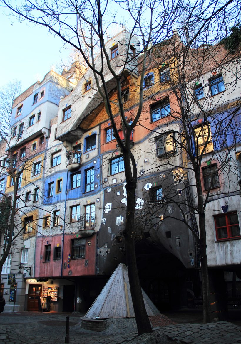 Дом Хундертвассера. Трудно остаться равнодушным, глядя на жизнерадостное здание, в котором нет ни одной ровной линии. Кстати, правильное название этой достопримечательности – Дом Хундертвассера–Кравины, так как архитектор Йозеф Кравина также принимал участие в проекте. Но основная задумка, несомненна, принадлежала гению Фриденсрайха Хундертвассера. Этот жилой дом никто не сможет упрекнуть в однообразии. Все его окошки увенчаны маленькими коронами, чтобы подчеркнуть, что каждый из владельцев – король своего жилья, который имеет право творить его таким, как хочется. Немалое место в архитектуре здания занимает природа, дом утопает в зелени, деревья неразрывно вплетены в его структуру. Это не просто безумная фантазия, а манифест художника, считавшего тюремными камерами лишенные индивидуальности типовые жилые дома, стремившегося к единению с природой и отвергавшему стандартизацию и диктатуру прямых линий. К сожалению, попасть внутрь удивительного здания не получится, так там находятся частные квартиры. Зато можно заглянуть в расположенный напротив торгово-выставочный комплекс «Деревня Хундертвассера» (Hundertwasser Village), спроектированный по тем же принципам. Или посмотреть фильм о художнике за чашкой кофе в соседнем Kunst-Cafe.
