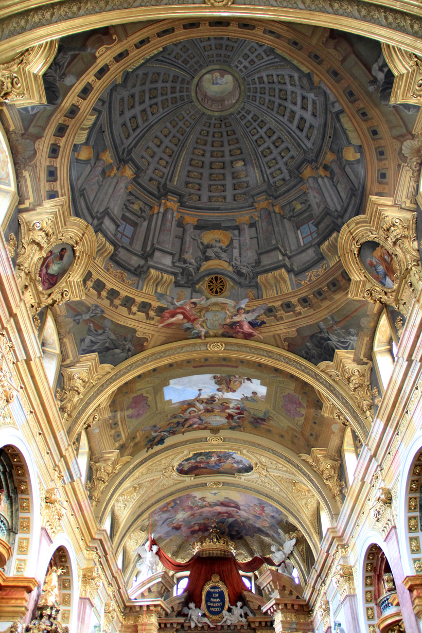 Церковь Иезуитов Jesuitenkirche запомнилась мне потрясающим интерьером, особенно хороши росписи потолка. Открыта с 07.00 до 19.00.