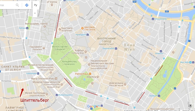 В принципе, похожее путешествие можно совершить на обычных трамваях, но придется сделать пересадку: доехать на трамвае 1 от остановки Oper до Schwedenplatz, а затем пересесть на трамвай 2 до Oper.