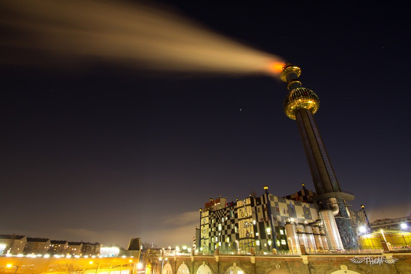 Даже здесь Хундертвассер смог внедрить особенности своего архитектурного стиля — изобилие зелени, волнистые линии, яркие цвета. Надо сказать, он не сразу согласился проектировать дизайн этого здания, поскольку не хотел быть причастным к «утилизатору», однако когда ему пообещали, что на заводе будут использоваться только самые современные, обновляющиеся технологии, все критерии будут отвечать строжайшим требованиям, а тепло от сжигания мусора создатели пустят на обогрев почти 100 тыс. городских квартир, Хундертвассер согласился. Как результат, сегодня Вена является одной из самых экологически чистых столиц Европы.