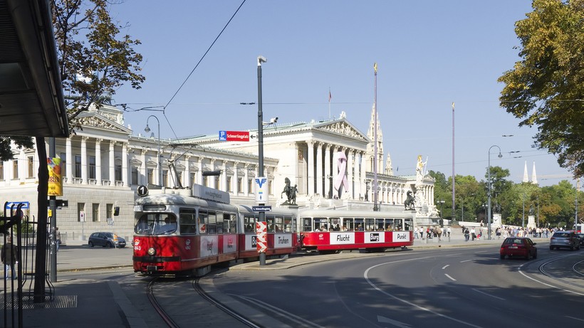 - На метро. Если вы хотите минимизировать расстояние, которое нужно пройти пешком, езжайте до станции метрополитена Schwedenplatz, которая находится на линиях U4 и U1. Там необходимо сесть на трамвай № 1 в направлении Prater Hauptallee. На каждой остановке находится электронное табло, на котором вы можете увидеть актуальную информацию о каждом трамвае этого маршрута: через сколько он приедет, на каких остановках остановится. Нужно выйти на Hetzgasse и пройти ещё пару минут в том же направлении — и перед вами будет Хундертвассерхаус во всем своём великолепии. Кстати, у трамвая №1 очень интересная история. Вплоть до XIX века на месте сегодняшнего Ринга, по которому и ездит этот вид транспорта (так сказать, венское садовое кольцо, только в гораздо меньших размерах), была стена, которая очерчивала границы средневековой Вены. В 1860 году император австро-венгерской империи Франц Иосиф приказал снести стену, а вместо нее разбить большой бульвар, который придал бы расширяющемуся городу более современный облик. Вскоре по бульвару пустили трамвай, в маршрут которого были включены все самые красивые и популярные достопримечательностями города и империи. Многие люди того времени мечтали на нем прокатиться.
