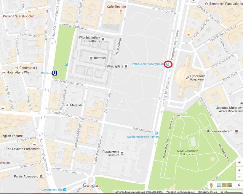 Или трамваи № 1, 71 и D до остановки Rathausplatz/Burgtheater.