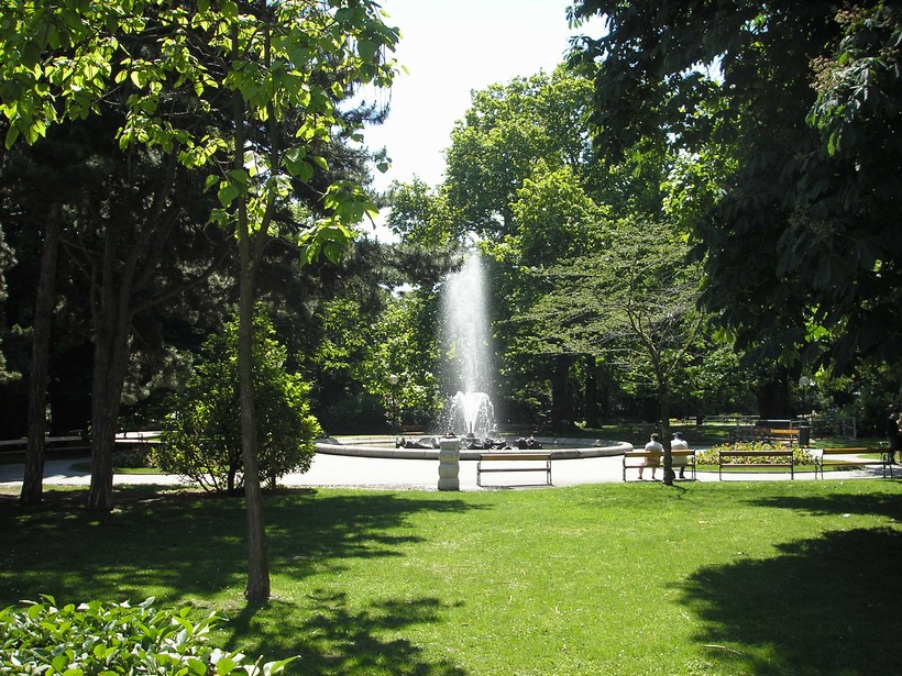 А на скамейках перед фонтанами можно отдохнуть от городской суеты. Как и положено, в парке много декоративных цветов и кустарников.