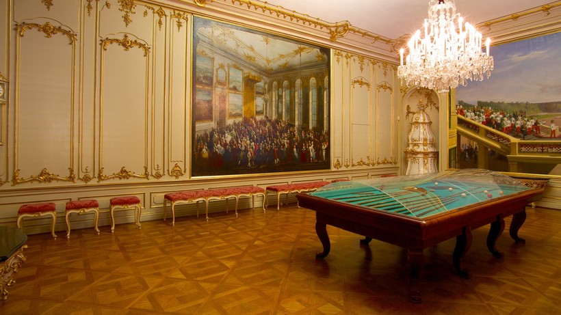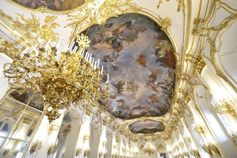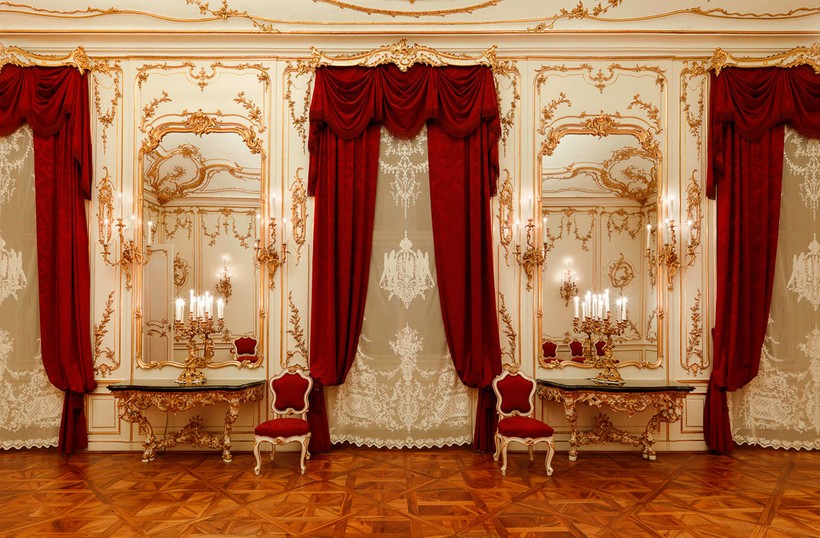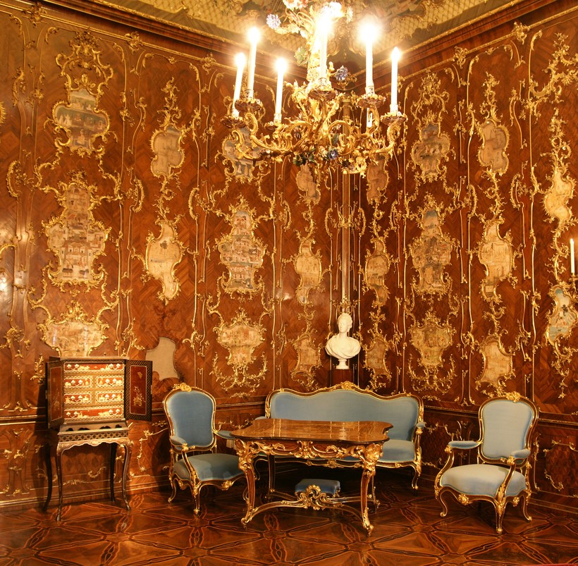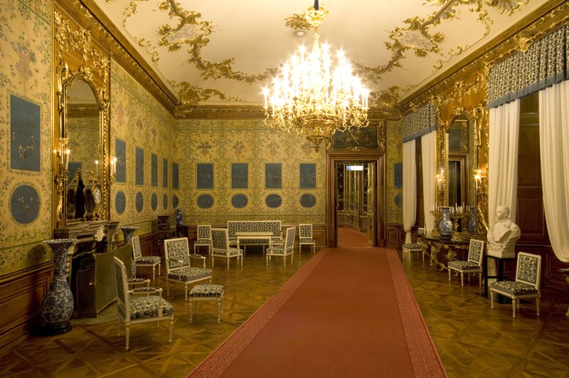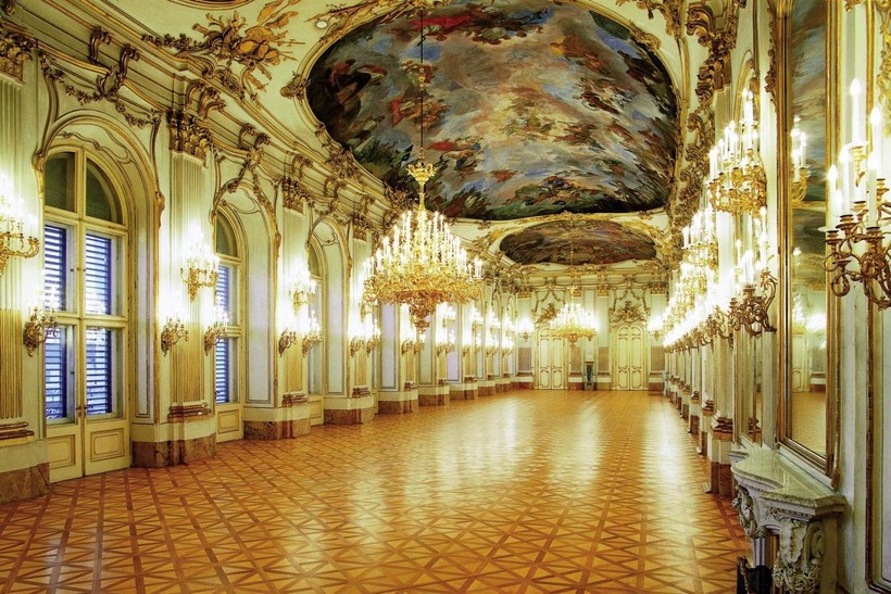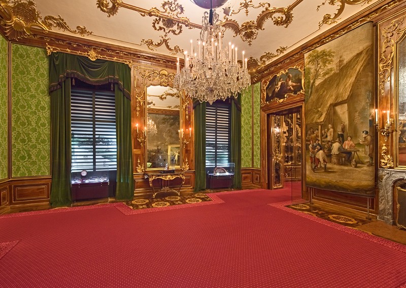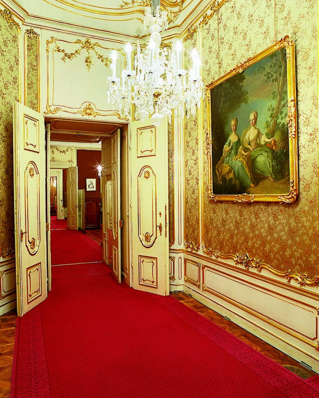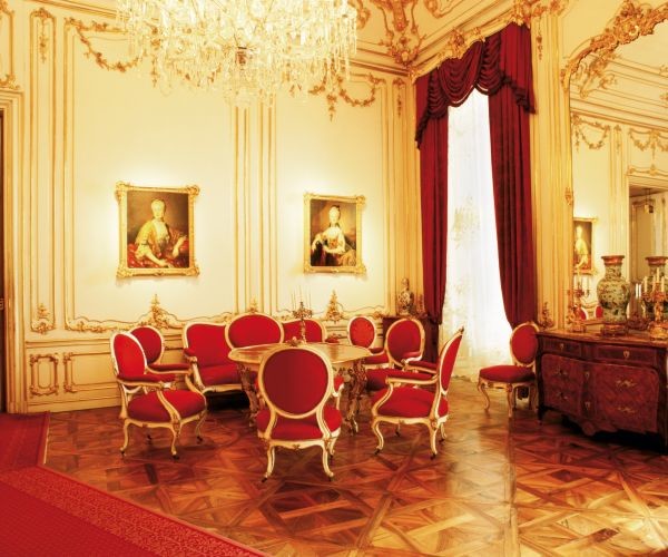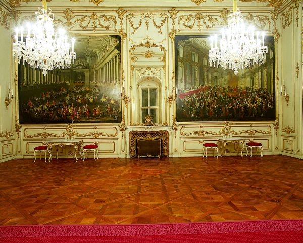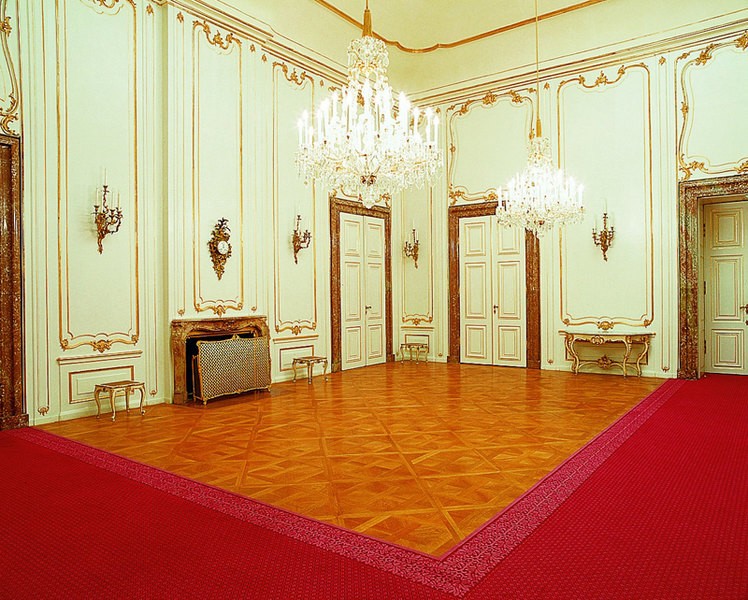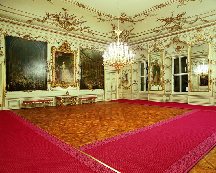 Внимание также привлекают китайские вазы и бронзовые часы, которые выполнены очень искусно. Неожиданно здесь же находится алтарь с изображением Девы Марии. Кстати, этот зал был популярен на разные события — тут выступал известный австрийский композитор В. Моцарт, принимали присягу многие министры, устраивали приемы.