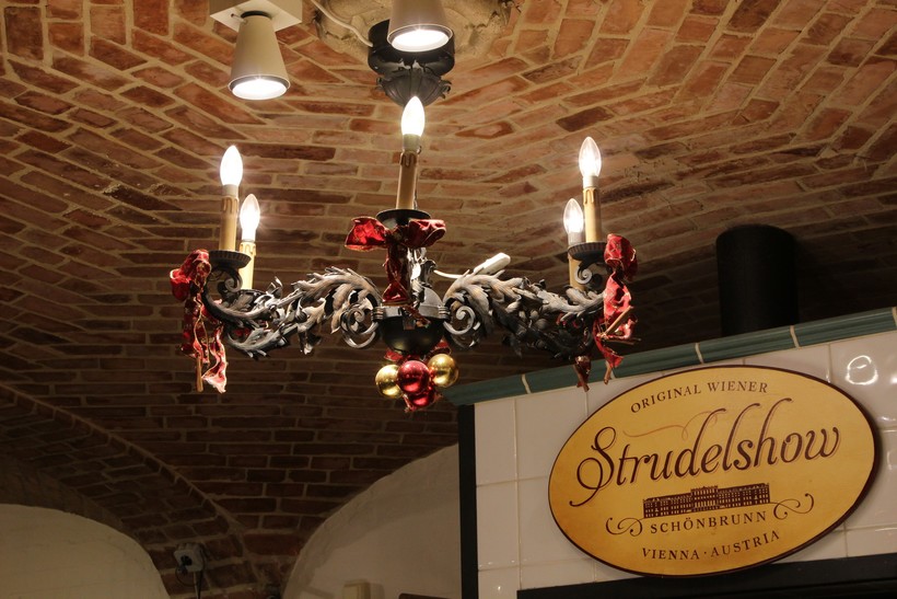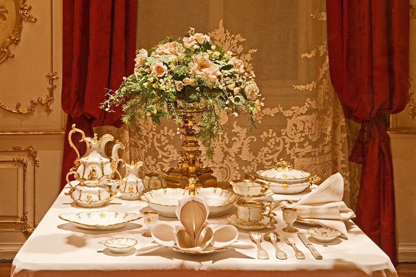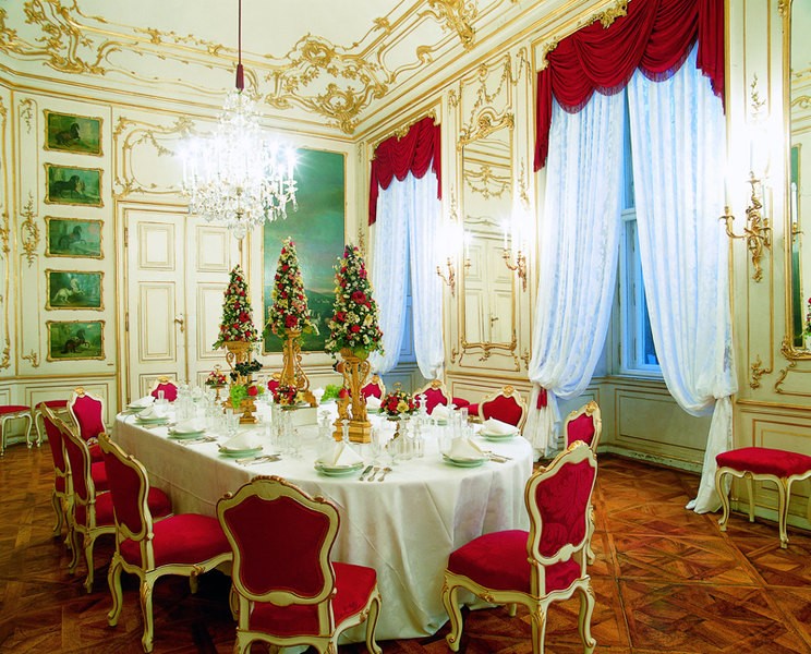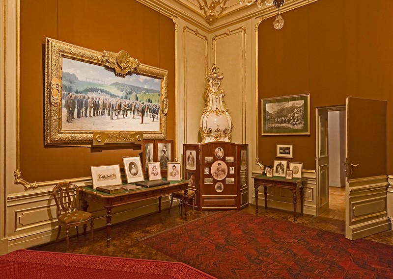 Это одно красивое помещение, которое было приспособлено под обеденную комнату. На столах стоят хрустальные бокалы, венский фарфор. В центре комнаты на стене картина Франца Иосифа в возрасте 20-ти лет.