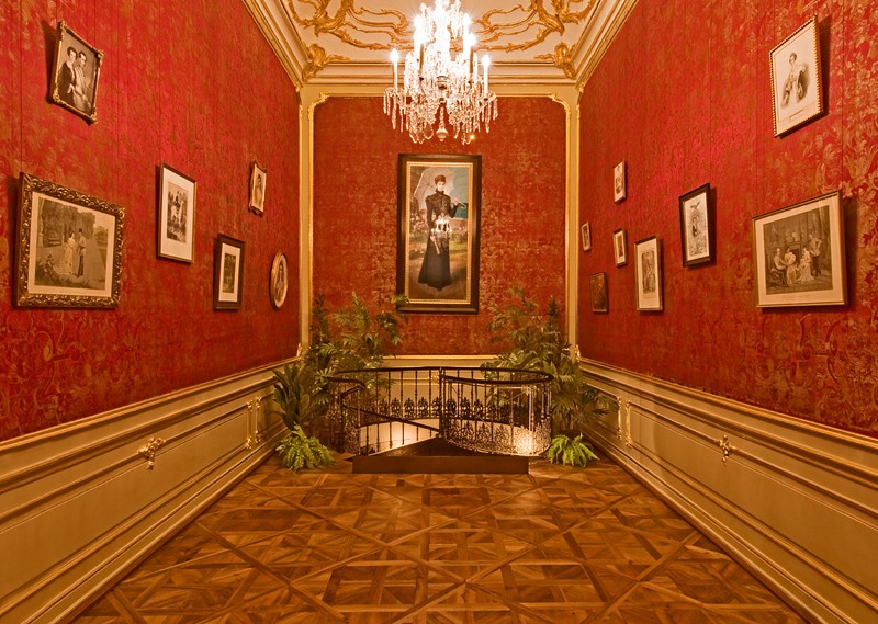 Наконец-то, мы добрались до самого интересного — внутренних покоев и комнат. Как только я стала подниматься по лестнице (на фото ниже), ведущей к началу экскурсии, в апартаменты Франца Иосифа и его супруги Элизабет (Сиси), так возникло ощущение того, что мой дресс-код (кеды да джинсы) не соответствует месту. Хотя, может, это и не важно, но советую все-таки выбрать длинное платье, будете чувствовать себя более уверенно.