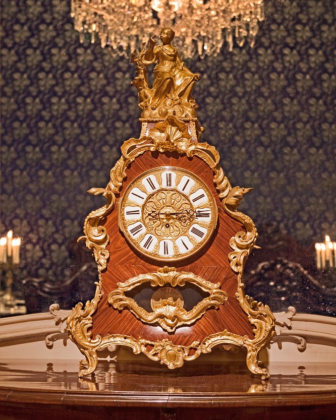 Интересной особенностью являются часы напротив зеркала, они стоят спиной, то есть посмотреть, сколько времени, можно просто взглянув в зеркало.