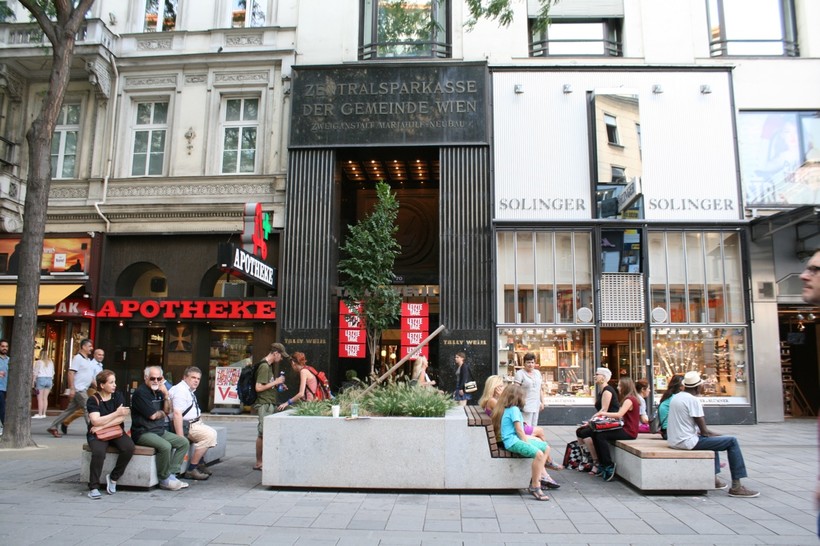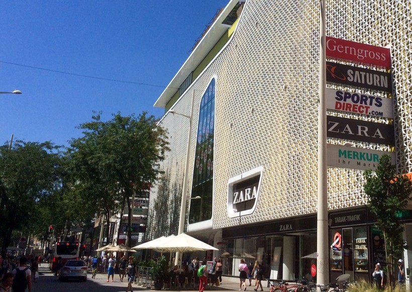 На первом фото у вас, почему-то Кертнерштрассе. Это совсем другой район, хот я там тоже много торговых точек, но более высокого уровня по сравнению с теми, что на Марияхильфештрассе. Например, тот же универмаг Штеффл, что виден на фото.