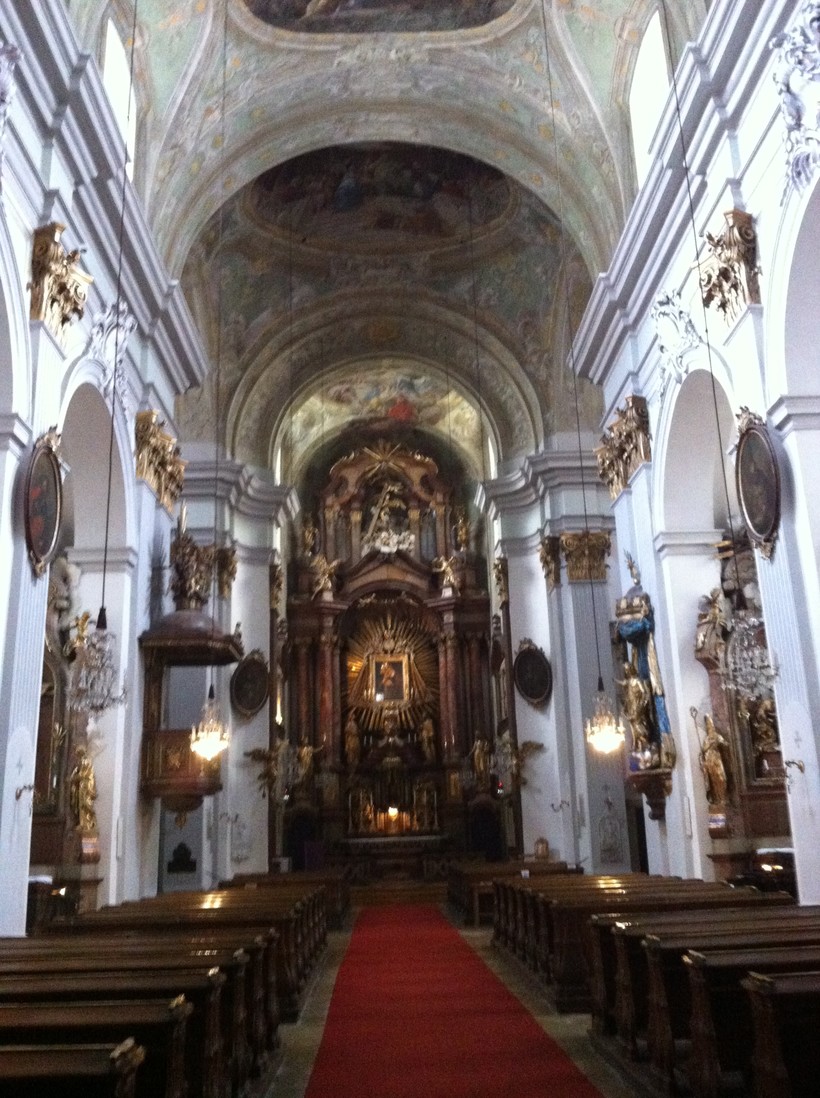 Вена была бы не Веной, если бы не исторические достопримечательности повсюду. Вот и на главной торговой улице города, среди магазинов, расположилась церковь Mariahilferkirche, или Barnabitenkirche . Она является приходом Римско-католической церкви. Построена в стиле барокко в конце 17-го века для Варнавиты, монашеского религиозного ордена. Когда я была там, внутри никого не было (видимо, все были заняты шопингом). Запомнился красивый, небольшой алтарь и просто изумительный орган. В больших окнах установлены витражи в стиле необарроко.