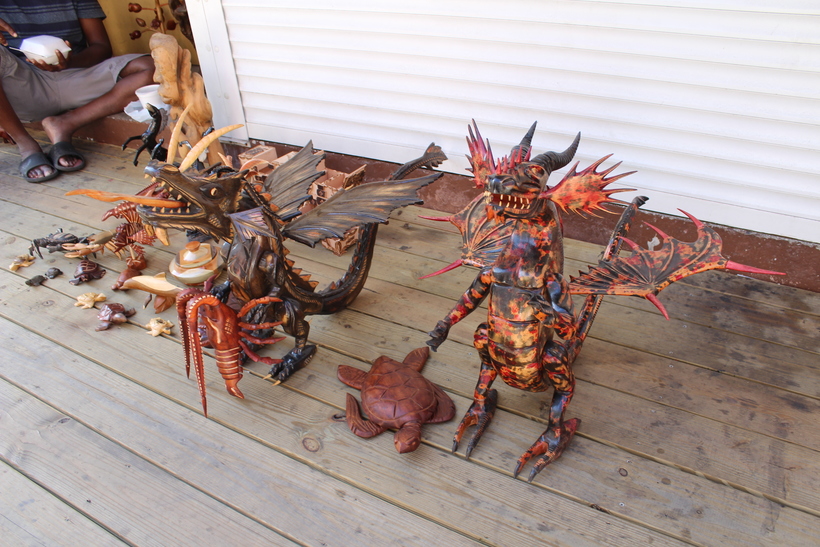 На улице, а также и местами в помещении размещены лавки, в которых продают деревянные фигурки разных животных и существ. Некоторые работы впечатляют размерами и детальностью!