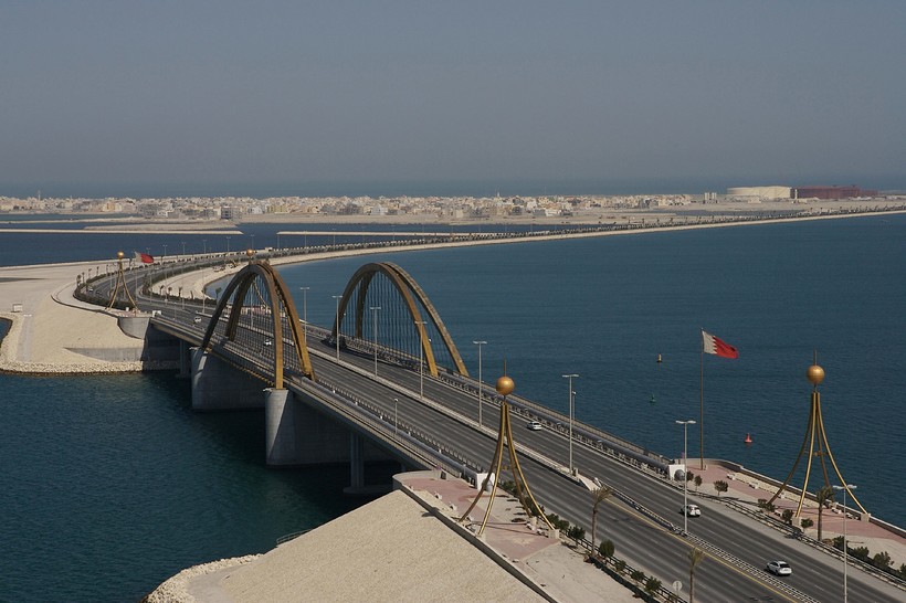 Как уже сказано выше, единственный способ добраться до Бахрейна по земле предполагает наличие у вас визы Саудовской Аравии. Между двумя странами переброшен уникальный 28-километровый мост King Fahd Causeway. На 15-м километре этой не имеющей аналогов автотрассы расположен пограничный переход. Там же – две башни, саудовская и бахрейнская. На верхнем этаже каждой из них по панорамному ресторану, а ещё можно просто сделать несколько кадров со смотровой площадки.