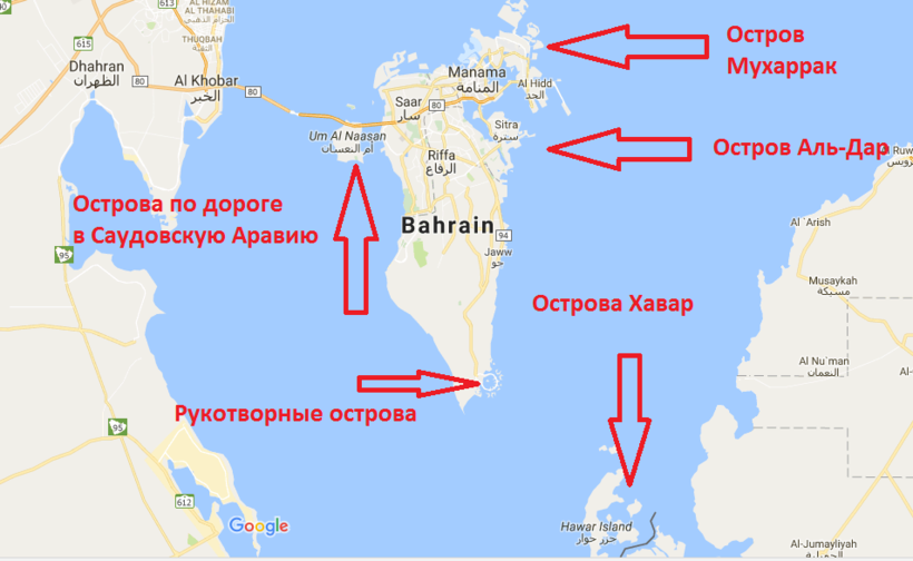 В общей сложности государство Бахрейн расположено на 33 островах, причем, некоторые из них искусственные. Через ряд островов переброшен автомобильный мост короля Фахда. С большей частью других центральный остров соединен насыпными дамбами. На третьи можно добраться с помощью катера из ближайшего порта на берегу большого острова. Как правило, поездка занимает около 15 минут, цена – 13-18 USD (5-7 BHD) за пассажира. Кстати, при покупке билета на катер просят паспорт, билеты именные. Частенько в стоимость поездки уже включено посещение пляжа, а многие из действительно хорошо благоустроенных бахрейнских пляжей платные. Собственно, именно за пляжным отдыхом и имеет смысл плыть на острова, все остальное сосредоточено в Манаме и окрестностях.