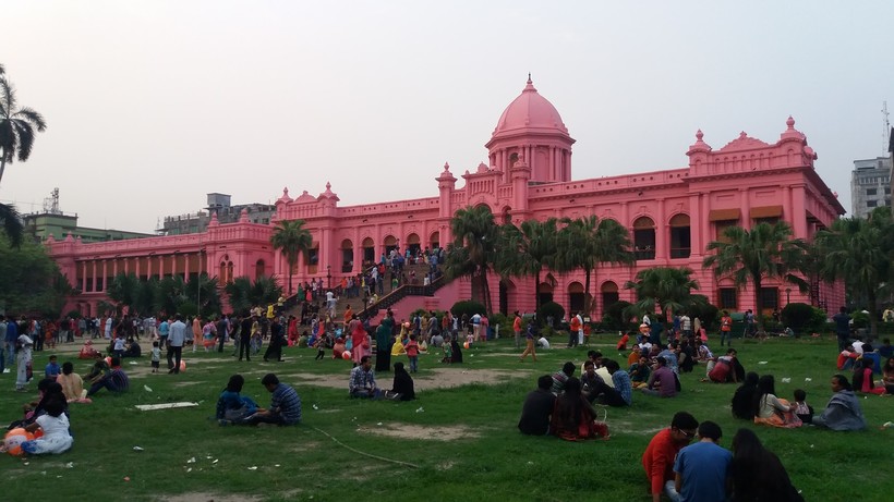 - Ахсан Манзил или Розовый дворец. Резиденция правителей Дакки, построенная в 19 веке, привлекает не только розовым цветом, но и интересной экспозицией внутри. Привлекает огромные толпы туристов и местных обывателей, полюбивших парк вокруг дворца - парки встречаются довольно редко.