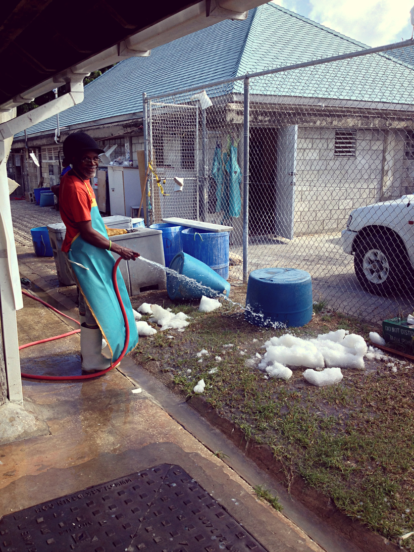- В пятницу вечером непременно поезжайте на Fish Fry в Остинс, грандиозную вечеринку с танцами, песнями и барбекю. Коробка еды и пиво обойдутся в 30–35 долларов /местных же?/. На двоих смело берите одну коробку. Здесь на выбор предлагают ребрышки, несколько видов мяса, а также роскошные стейки из тунца, махи-махи. Еду готовят на открытом огне. Одно зрелище чего только стоит. На гарнир подают рис, овощной салат и макарони пай. Последнее представляет собой что-то вроде запеченных (по-моему, просто слипшихся) макарон.
