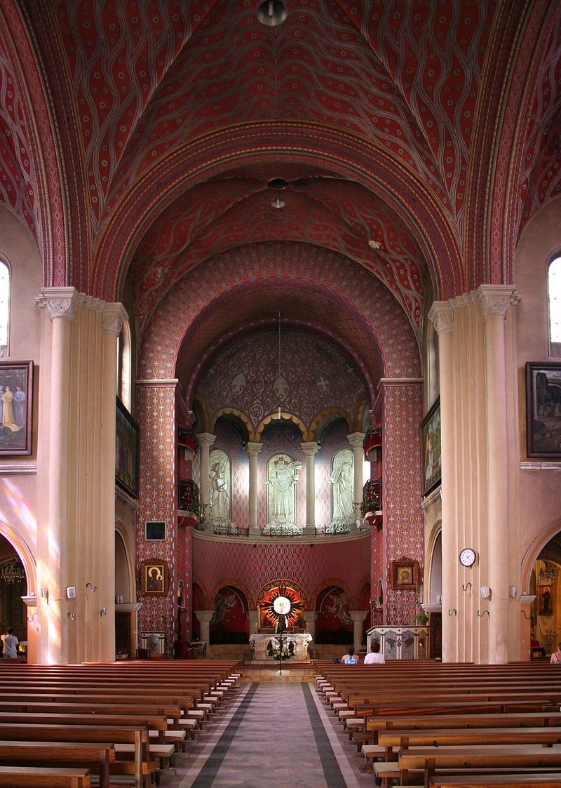 Внутри церковь украшают многочисленные витражи и арочные системы.