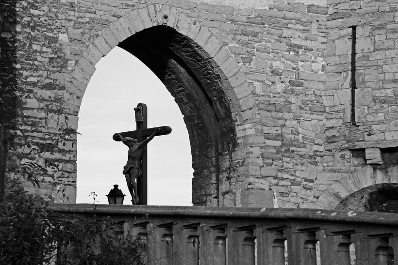 Пройдя через арку, справа вы увидите статую, изображающую Иисуса Христа на кресте.