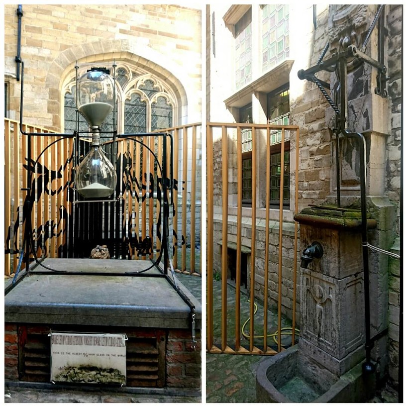 Я была очень удивлена, когда неподалеку обнаружила самые старые в мире стеклянные песочные часы (!). Они отмеряют 30-минутные интервалы. Неожиданное и приятное открытие! Рядом с часами находился старинный водяной насос.