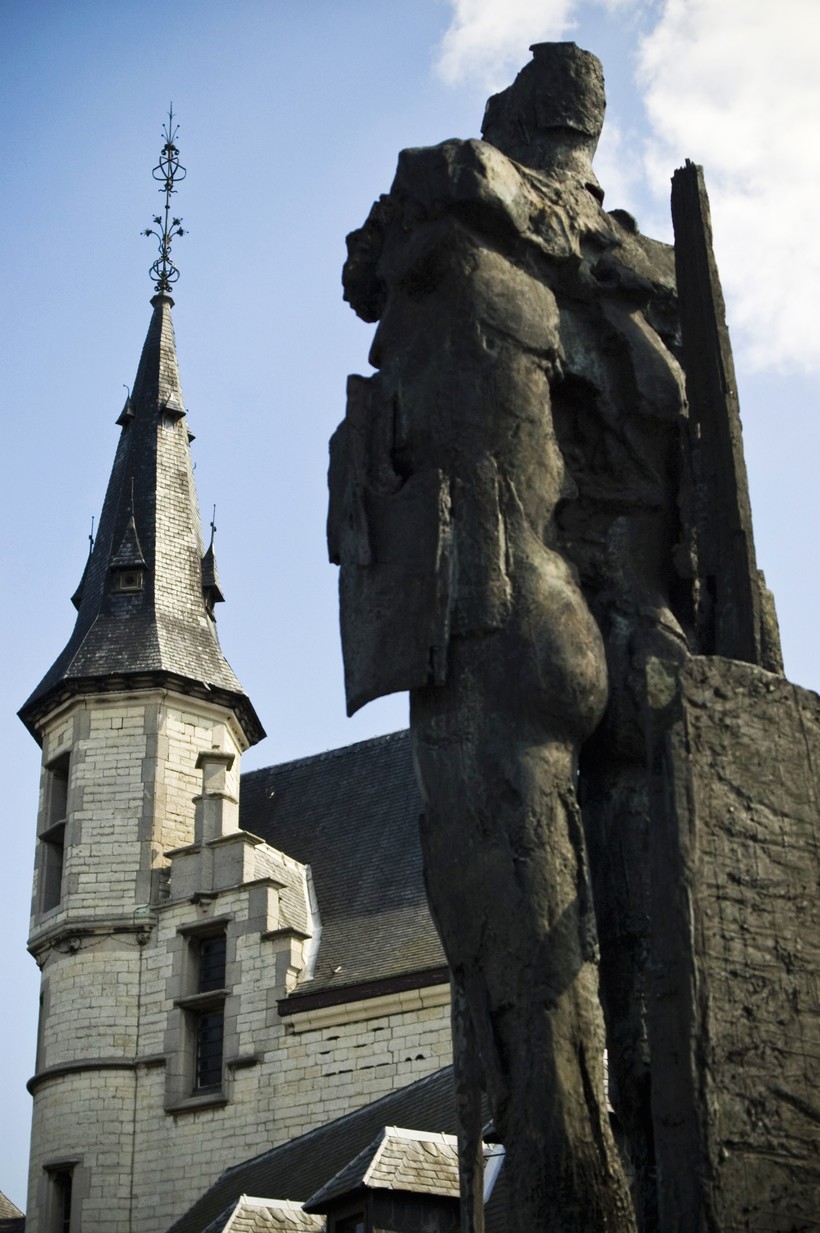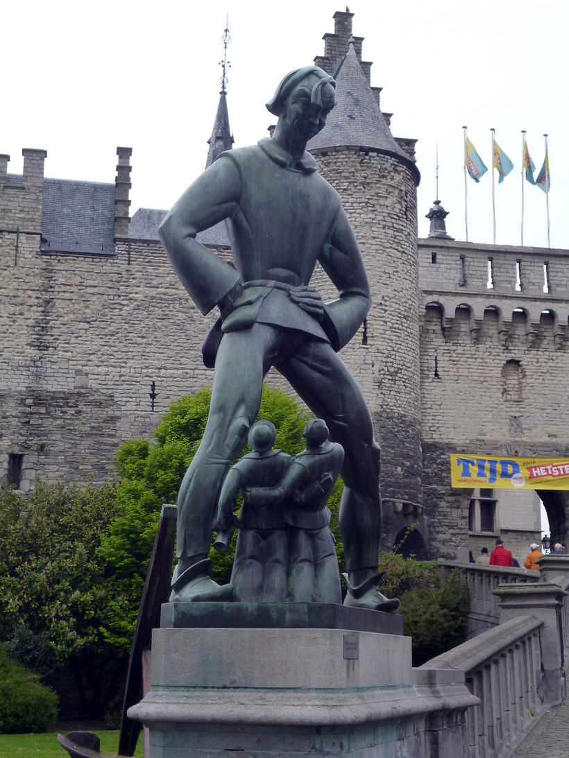 У входа в замок стоит одна из самых известных статуй Антверпена: Длинный Ваппер. Статуя, созданная Альбертом Поэлем в 1963 году, изображает легендарную фигуру персонажа, который согласно фольклору Антверпена, мог вырасти до гигантских размеров и попадать из одного города в другой одним скачком. Ваппер не любил пьяниц и по ночам преследовал их и угрожал расправой. Также ему очень нравилось дразнить людей, особенно — детей. В сохранившихся сказаниях о его проделках упоминается, что он смеялся как дьявол, и почему-то питал слабость к грудному женскому молоку. По моему мнению, довольно странный парень... Собственно, статуя изображает, как Длинный Ваппер угрожающе нависает над двумя пьяницами-бедолагами.