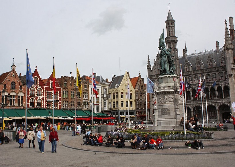 Если Брюгге еще не успел очаровать вас своими улочками, площадь Маркт точно сделает это: здесь всё те же очаровательные домики выглядят еще более кукольными и нарядными благодаря ярким цветами – желтый, розовый, рыжий, белый, красный! Главные достопримечательности площади – уже упомянутая башня Белфорт, ставшая символом города после фильма «Залечь на дно в Брюгге». Построенная в 13 в. звонница успела послужить и в качестве сокровищницы, и в качестве хранилища архивов.