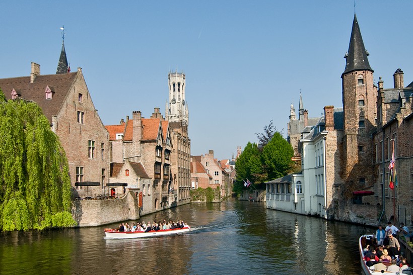 Начать осмотр города я рекомендую с пешей прогулки по самым главным улицам и площадям. Сначала отправляйтесь в небольшой переулок Rozenhoedkaai, откуда открывается один из самых известных и всеми любимых видов Брюгге: поворот канала, романтичный мостик, уходящие в воду домики из красно-серого кирпича и плакучие ивы, опускающие ветви в воду. У моста есть небольшая пристань, откуда вы можете отправиться на прогулку по каналам города в лодочке на 20-30 человек. Это отличный вариант для начала знакомства с городом в хорошую погоду. Стандартная поездка длительностью 40-60 минут обойдется вам в 7 евро, вы сможете полюбоваться многочисленными мостиками через каналы и посмотреть на старинные домики с воды.