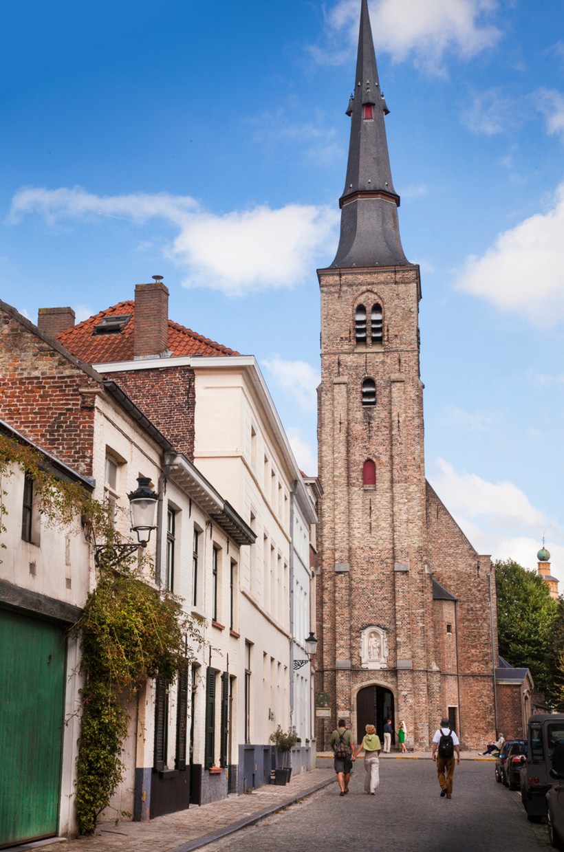 Сразу за Маркт находится еще одна небольшая площадь – Eiermarkt, или Малый рынок, здесь вы найдете еще несколько уютных кафе, где можно перекусить во время прогулки. Отсюда отправляйтесь по улице Sint-Jakobsstraat к одноименной церкви Святого Якоба. Архитектура этого собора типична для Брюгге: как и многие строения в городе, она из красного кирпича, во внешней отделке присутствуют готические элементы, но декора довольно мало, поэтому мне здание кажется массивным и довольно давящим на фоне более легких и игривых домиков вокруг. Напротив церкви на небольшой площади расположился старинный колодец, а улицы поблизости интересны сочетанием современной и старинной архитектуры. Местные жители борются за сохранение исторического облика города, поэтому новые дома в этих кварталах отличаются только формой крыш: не треугольный или ступенчатый чердак, а обычная плоская крыша.