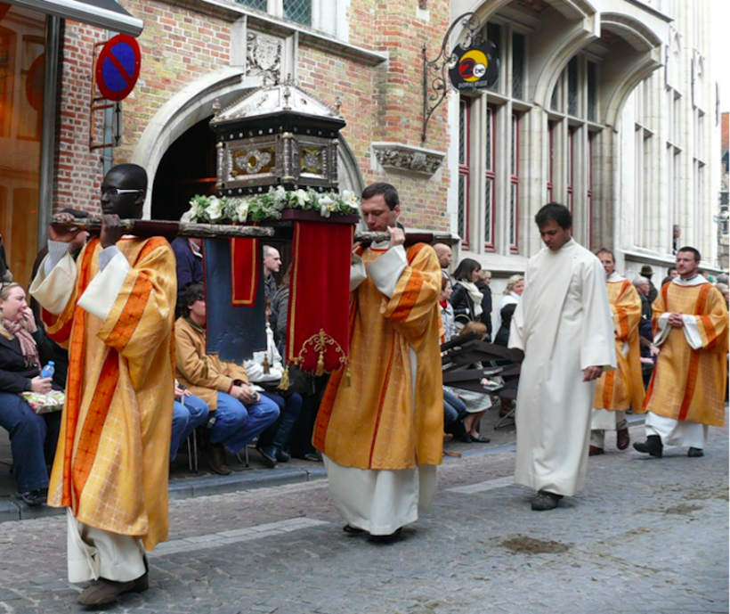 Главное событие праздника Святой крови – пышное религиозное шествие, в ходе которого разыгрываются сценки на библейские сюжеты. Увидеть его можно в мае, шествие проходит в день религиозного праздника Вознесения (в 2017 году он выпадает на 25 мая, хотя обычно это более раннее время – 10-е числа месяца). В это время хорошо приезжать в город, так как улицы украшают цветами и город становится еще наряднее.