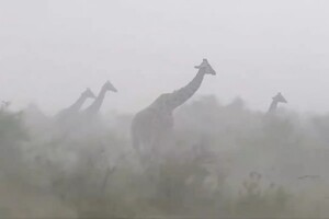 Видео: жирафы во время дождя просто стоят и ждут, когда он закончится