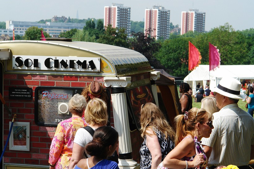 Кинотеатр на колесах воспроизводит короткометражные фильмы разных годов посредством светодиодного проектора, что позволяет создать истинную кинематографическую среду, а приветливый персонал создает радужную атмосферу перед просмотром кино. Сеанс обойдется вам в 5£, а также здесь можно приобрести попкорн и сладкую водичку на ваш вкус.