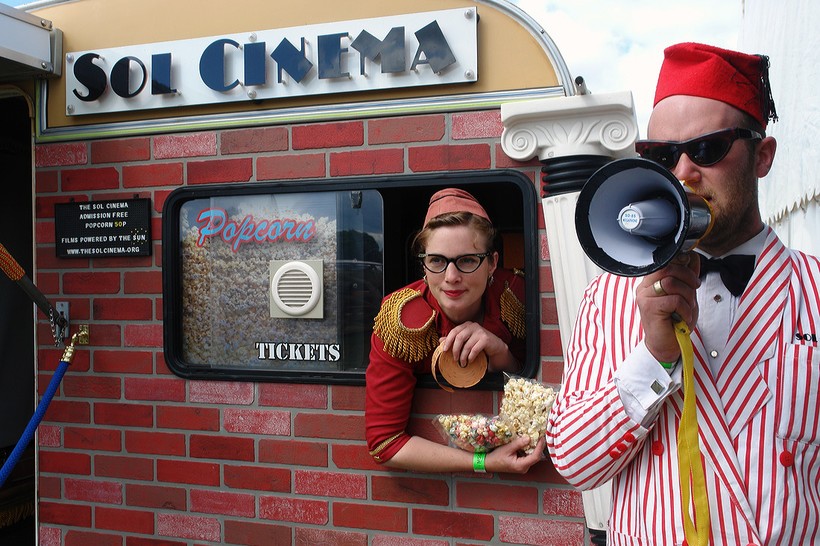 Группа друзей из Уэльса гордо демонстрирует свой крошечный, но стильный кинотеатр Sol Cinema, что полностью функционирует благодаря солнечному генератору энергии, который полноценно обеспечивает работу столь маленького домика на колесиках и не переводит энергию даром.