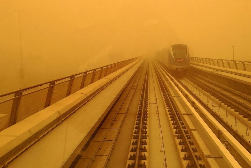 В апреле Дубай настигла довольно сильная песчаная буря, которая стала причиной ограничения видимости на улицах до 500 метров. Песок из окружающей город пустыни ветер разносил повсюду, чтобы хоть как-то защитить свои легкие людям приходилось надевать повязки и специальные защитные маски, а полиция не рекомендовала покидать дома, если на то не было какой-то особой причины.