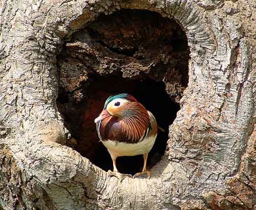 Утки мандаринки моногамны, то есть образующиеся пары сохраняются на протяжении всей жизни партнеров. Интересно, что гнездятся самки на дереве. В то время как все остальные утки строят гнезда и высиживают птенцов на земле, мандаринки предпочитают обезопасить свое потомство. Помимо них так поступает еще один представитель рода лесных уток — каролинская утка, обитающая в Северной Америке.