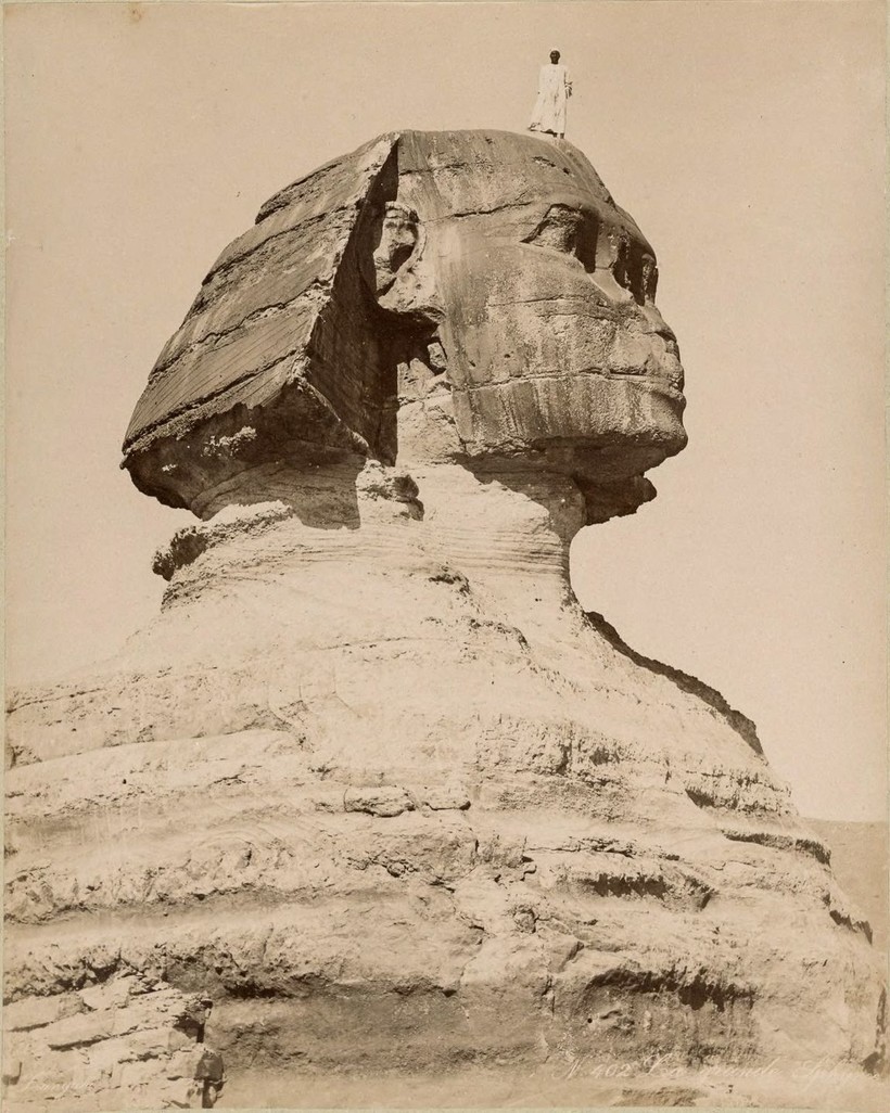 Египтянин на голове Большого сфинкса в Гизе.