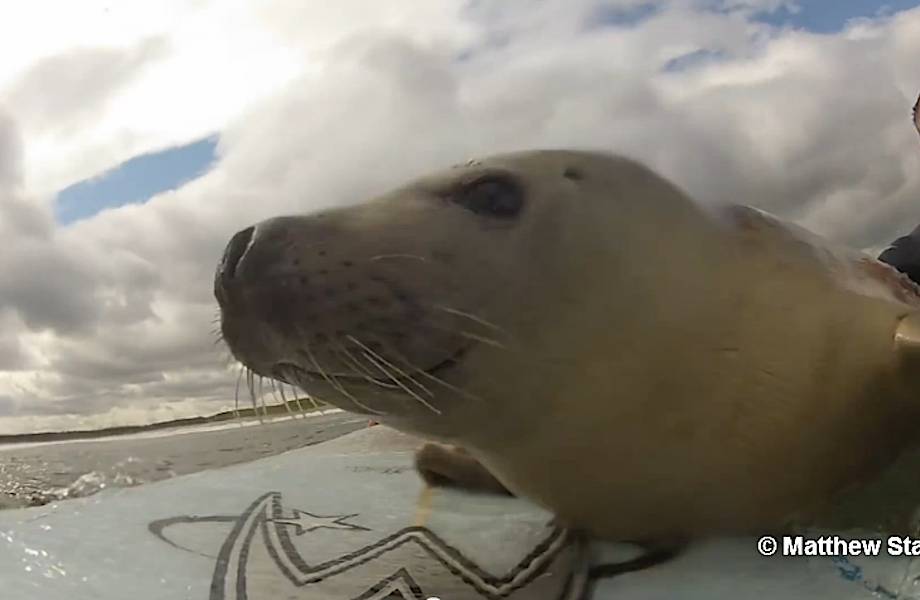 Британский серфер Мэтью Стэнли занимался своим любимым видом спорта у побережья Северного моря, как вдруг произошла удивительная вещь — маленький детеныш тюленя запрыгнул к нему на доску, решив тоже прокатиться. Надо отметить, что у этого милого очарования неплохо получилось. Потрясающее видео!