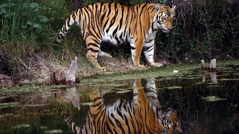 Но тигры набираются терпения и ждут своего часа. В сезон размножения, который длится у павлинов с апреля до осени, самцы особенно уязвимы. Дело в том, что все их мысли и поступки в это время заняты только привлечением самок и сражением с конкурентами. Распушив свой хвост, павлин очаровывает самку и совершенно забывает об опасности, которая подкрадывается сзади. Шикарный хвост лишает птицу обзора, а тигры не упускают этого момента: один прыжок, и жизнь красавца обрывается.