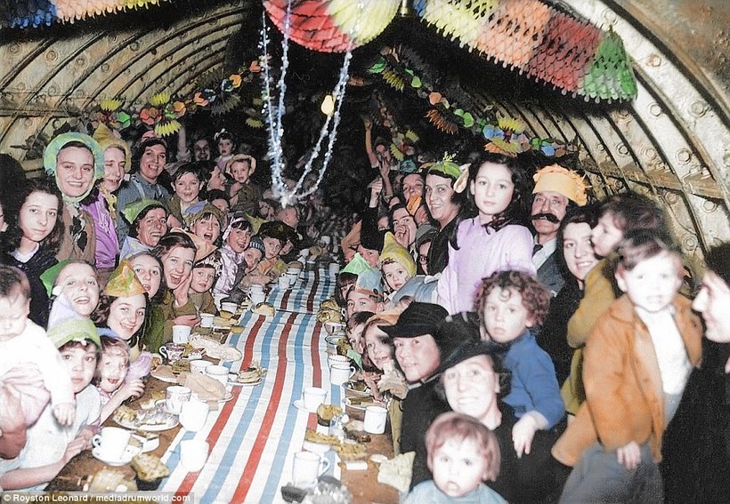 Семьи празднуют Рождество в бомбоубежище, 1940 г.