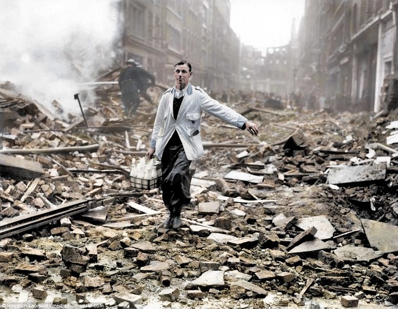 Молочник все так же продолжает выполнять свою работу, идя по обломкам Лондона.