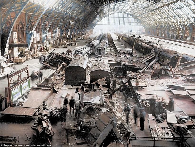 Железнодорожный вокзал Сент-Панкрас, который находится в центре Лондона, пострадал несколько раз. Но сильнее всего — в мае 1941 года, когда на него сбросили пять бомб.