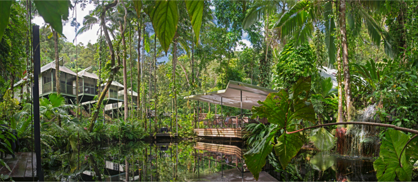Еще один австралийский отель в лесах Дейнтри недалеко от Большого барьерного рифа. К услугам посетителей — различные SPA-программы и потрясающие виды из окна.